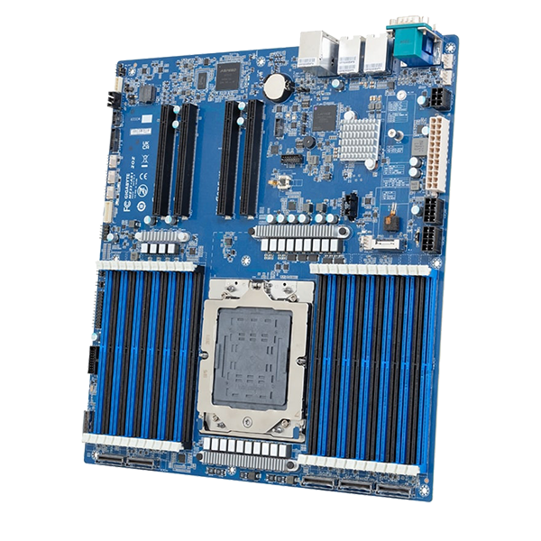 AMD Epyc 9004/9005, TDP up 500W, System on Chip, up to 24xDDR5 5200MHz ECC REG, PCIe: 4(x16), 1(x8), 1 M2 NVME, LAN: 2x10GbE RJ45 (BCM57416), 16xSATA (via 2 MCIO x8) or 14 NVMe (via 7 MCIO x8), VGA, LAN management, AST2600, E-ATX – Standard